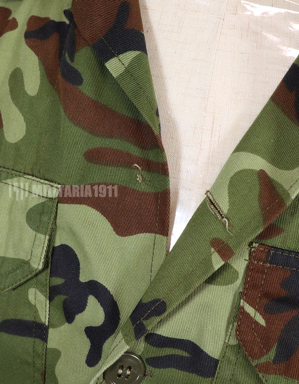 生地はしっかりしています。2番目の前ボタンが欠損しています。胸ポケットなどにレンジャーパッチを貼り付けたりするとかっこいいアイテムです。雑な仕上げがローカルっぽい雰囲気のあるカモフラージュシャツになります。この機会にいかがでしょうか?中古品ですので返品はできません。ご了承くださいませ。
