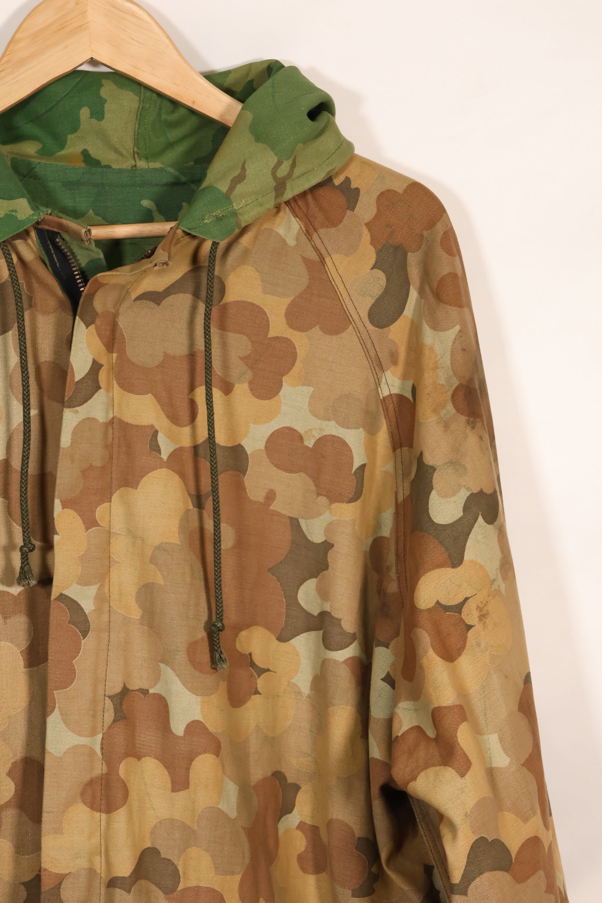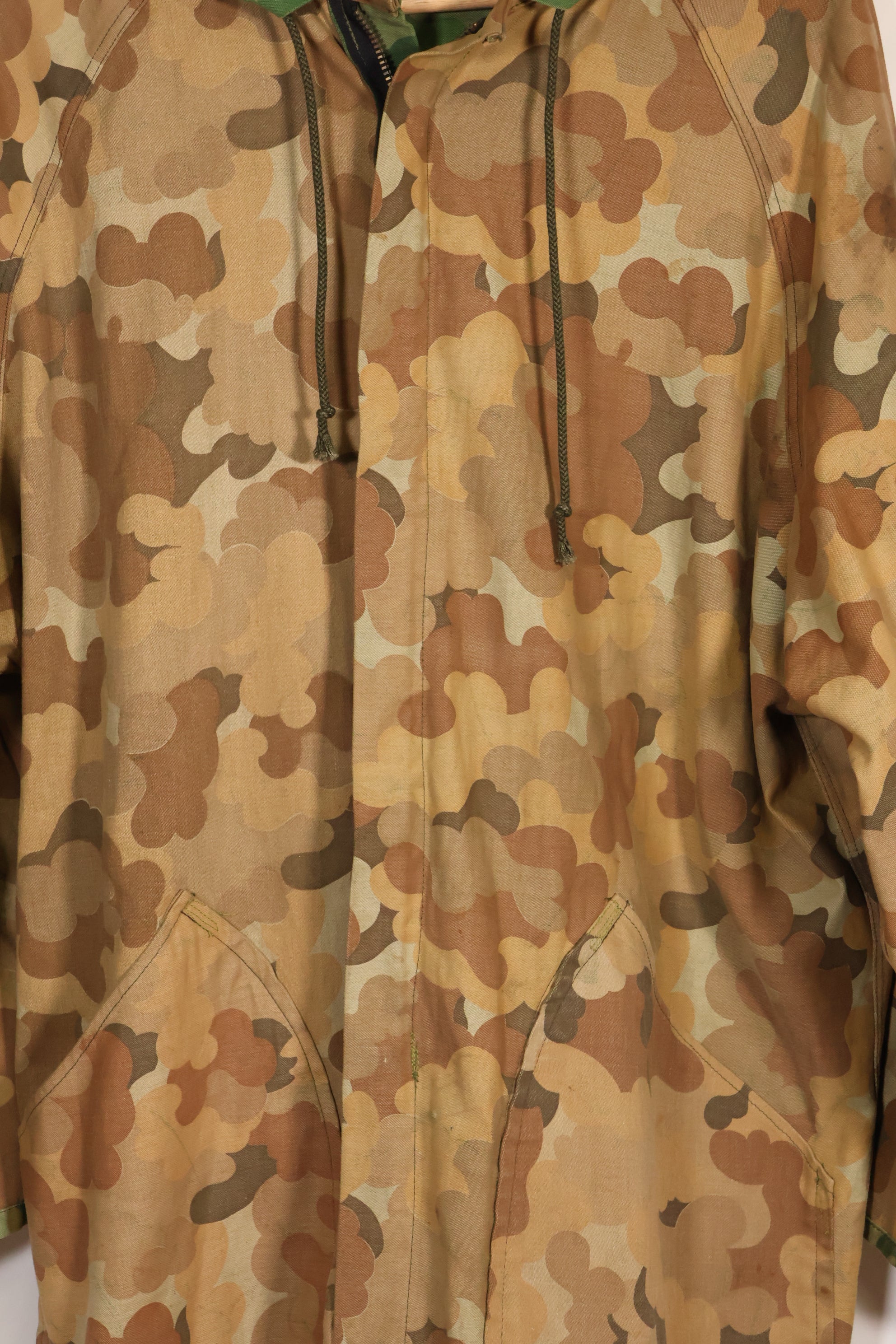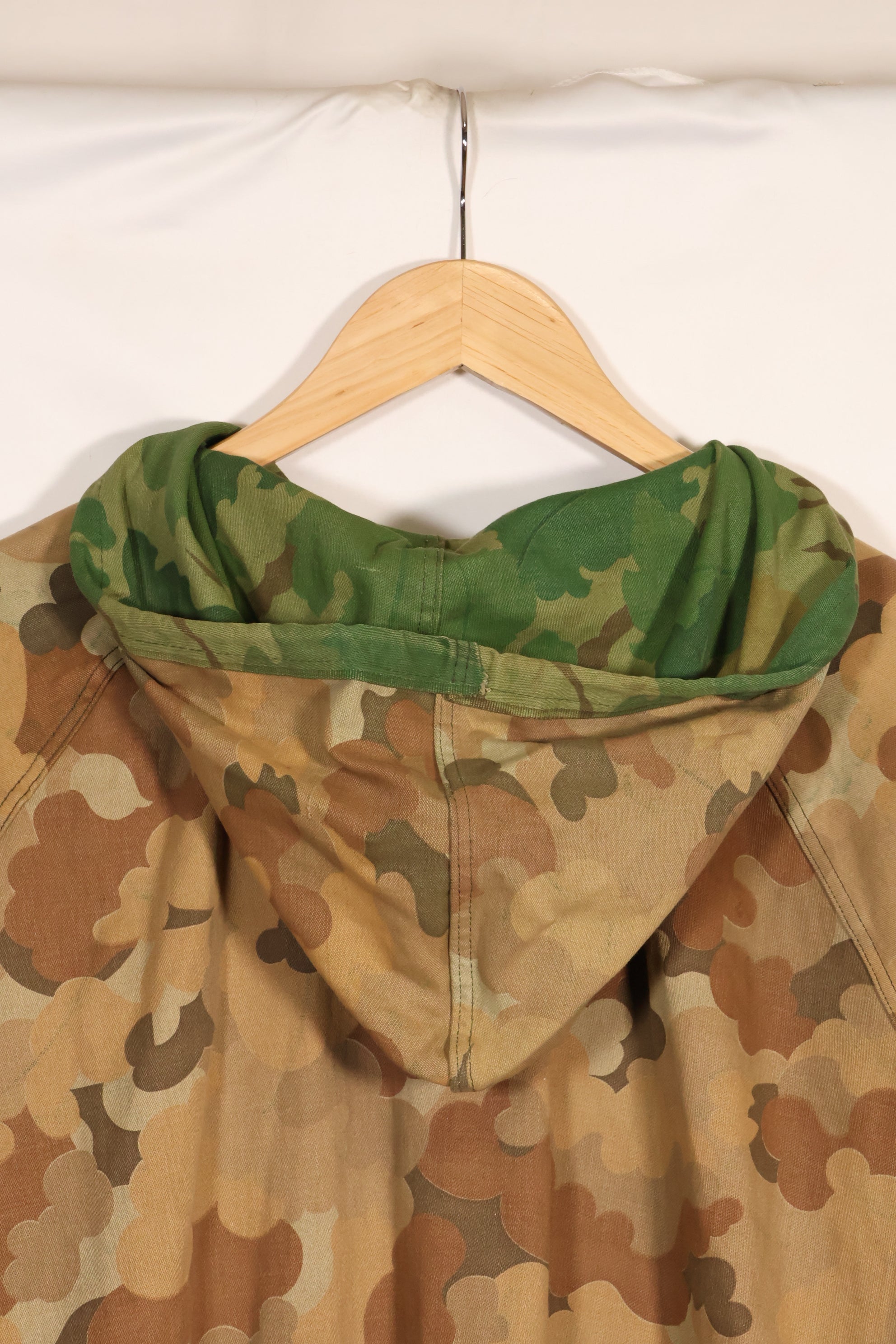 ミッチェル迷彩生地を使用した古いレプリカです。生地は米軍のものではなく、おそらく復刻品です。実物と同様にリバーシブル仕様。着丈の長めなスーバニアジャケットカットでフードのついているパターンです。メーカーや製造時期は不明です。やや汚れがあります。普段使いできるとても良いパーカーです。中古品ですので返品はできません。ご了承くださいませ。