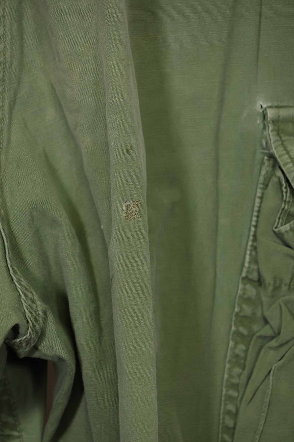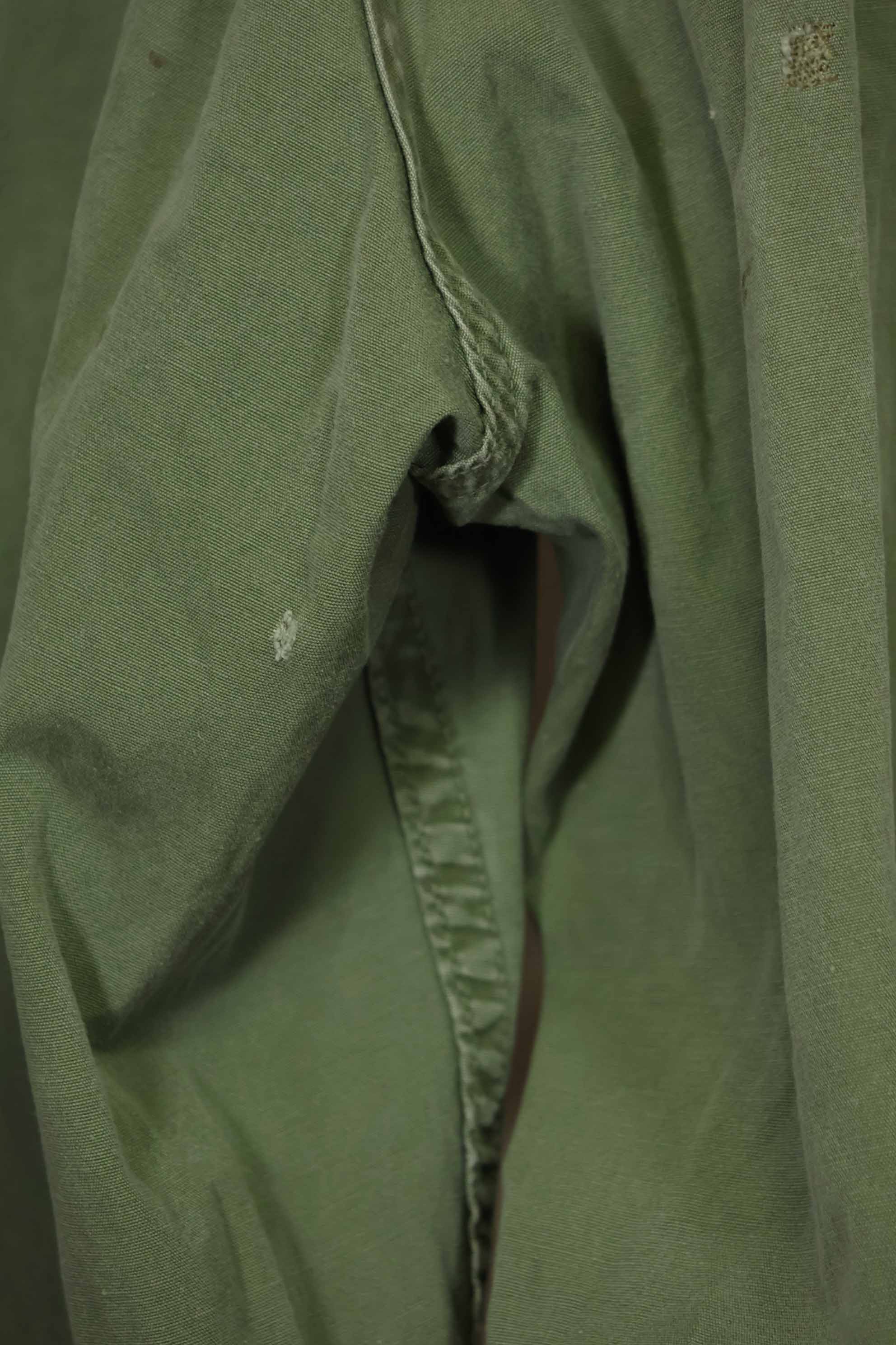 推定1967年契約と推定される3rd Model ジャングルファティーグパンツの中古品です。いわゆるノンリップ呼ばれる、ポップリン生地のパンツです。サイズタグはSMALL-LONGです。ボタンフライになります。