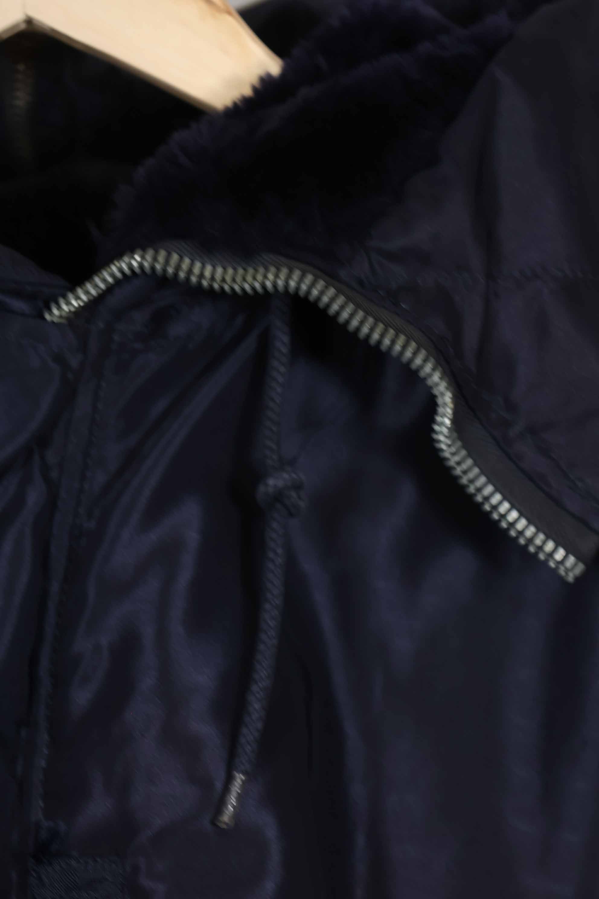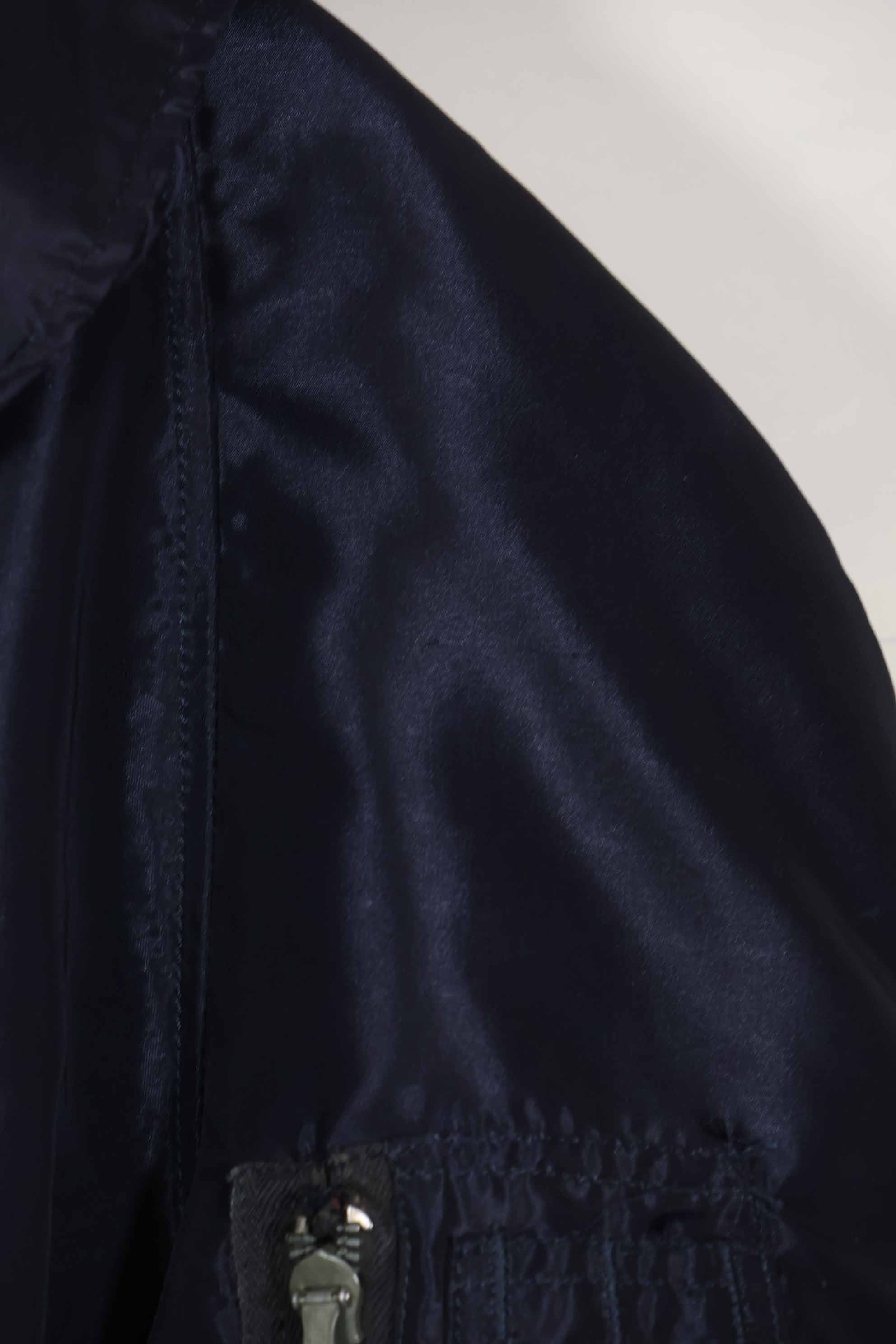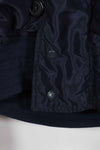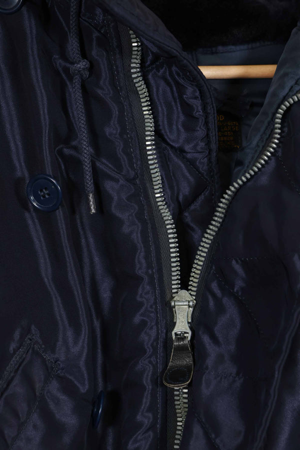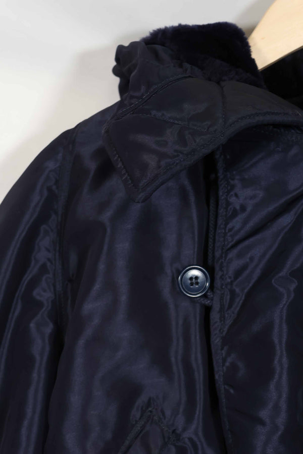 1950年代初頭ロットのアメリカ空軍N-2Aフライトジャケットの中古品です。このロットの特徴的な点はヒンジのついたCROWNジッパーが使用されている点です。フードのファーは取り外されており、フードに縁は縫い付けられていますが手縫いによるもののため解いていただくことで取り付けが可能です。それ以外に付属の欠損はありませんが、前ボタン一番下のボタンはリプレースされています。リブの破損、虫食いもほぼなく綺麗です。左袖付近に白い汚れがあります。着用感も少なく、エアフォースブルーの美しいジャケットです。サイズもLARGEと大きめです。約70年以上前の品物ではありますが状態は良いといえます。まだまだお楽しみいただけるコンディションです。中古品ですので返品はできません。ご了承下さいませ。