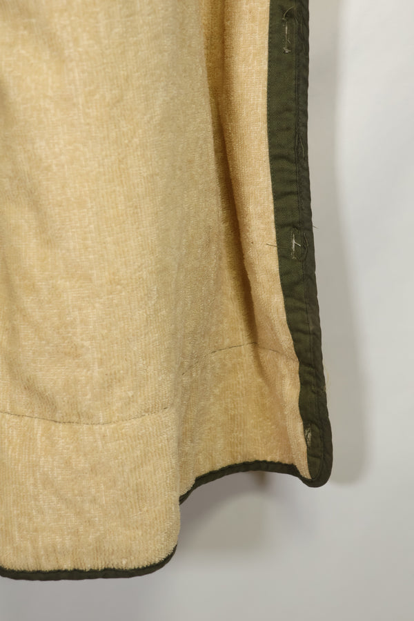 1956年製のスタンプがされているM51 フィールドパーカー用のパイルライナーです。タオル状の生地が特徴的なライナーで、M65ジャケットなどで使用されているライナーとは異なります。基本的にはナイロン側を内側にすることでM51フィールドパーカーを着用した時にスムーズに着用できるように作られています。もちろんパイルライナー側を裏地にし、ライナー単体としても着用可能。M65パーカーで使用されていたライナーとは異なり重量があります。全体的に状態は良く比較的綺麗な状態。やや日焼けによる変色がナイロン側にあります。まだまだお楽しみいただけるライナーです。中古品ですので返品はできません。お手元のMサイズのM51パーカーとちょうど合うサイズです。