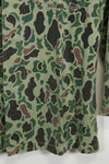1960年代の韓国軍が使用したフロッグスキン迷彩戦闘服です。胸にはテープパッチの跡が残っています。全体的に退色しており、やや白く感じる印象。裏側には、官給スタンプがありますが消えており詳細は確認できません。前ボタン上から二番目のボタンが欠損しています。状態はよくまだまだお楽しみいただける状態です。中古品ですので返品はできません。ご了承くださいませ。