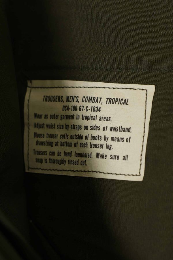 1967年製の3rd Modelノンリップストップ生地製のジャングルファティーグパンツです。当時から未使用で残ったデッドストック品です。保存状態によって、未使用ではありますが汚れがございますがラベルの状態などからみても未着用といえます。