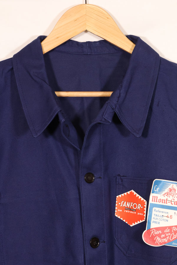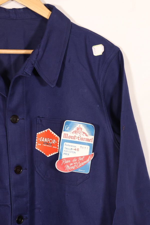 当店としては珍しく、フランス製のワークウェアが入荷いたしました。USMCのユーティリティジャケットにも似た、3ポケットのワークウェアで未使用品。紙のラベルも残っています。未使用品ではありますが、中古品扱いといたします。返品はできませんのでご了承くださいませ。